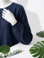 The front button detailing adds a subtle touch of style, while the long sleeves with gathered cuffs ensure a modest yet modern look. Its timeless design pairs beautifully with hijabs and accessories, giving you a versatile piece for your collection.