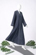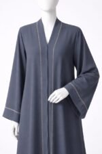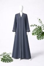 Experience timeless elegance with the Silent Line Abaya, designed for women who appreciate simplicity with a refined touch. This abaya features a solid charcoal grey color complemented by delicate straight embroidery lines running gracefully along the front, creating a clean and sophisticated appearance. The minimal design enhances its versatility, making it suitable for both everyday wear and formal occasions.